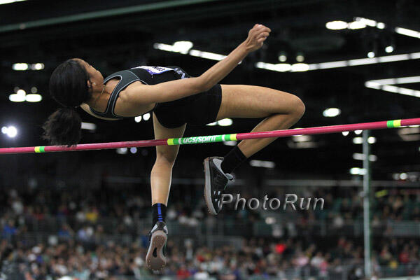 Cunningham won her first USATF senior title with a near-perfect performance, clearing every bar on her first attempt until her world indoor junior record of 1.99m/6-6.25, which she cleared on her second try. Cunningham had already set a new high school record with her effortless clearance of 1.96m/6-5 and bettered it on the next height.