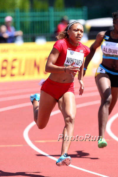Kaylin Whitney (Clermont, Florida) showed flashes of the form that took her to a World Youth best three weeks ago, running away with the third semifinal in the women’s 200 in 23.05, the second-fastest time overall. A tough first semi saw LSU’s Jada Martin (Lithonia, Georgia) finish second in 23.57 to advance to the final.