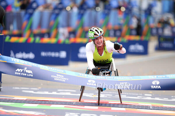 NEW YORK — Tatyana McFadden captured her third straight TCS New York City Marathon victory and 12th World Marathon Major win with her record-breaking 1:43:04, while Meb Keflezighi crossed as the top American male and seventh overall in an American masters record of 2:13:32.