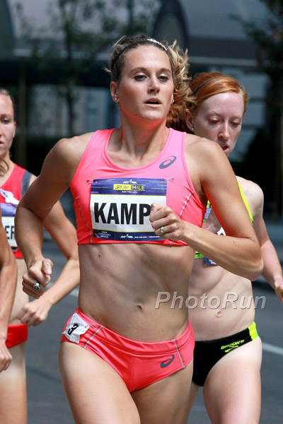 As the runners hit the halfway mark, Kampf put in a small surge to pull away from the chase pack, building a two second lead as she pushed into the final quarter mile of the race.