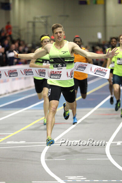Casimir Loxsom (Seattle, Washington) was in command from the gun in the men’s 600m, sprinting to the front and passing 200m at 23.76 and 400m at 48.26 to close for the American Record and the win in 1:15.33. He clocked the fourth-fastest time ever and was a quarter-second better than his own AR set Jan. 24 at Albuquerque. Behind Loxsom, Mark Wieczorek (Seattle, Washington) had the fastest final lap overall at 26.59, and he grabbed second in 1:16.07.