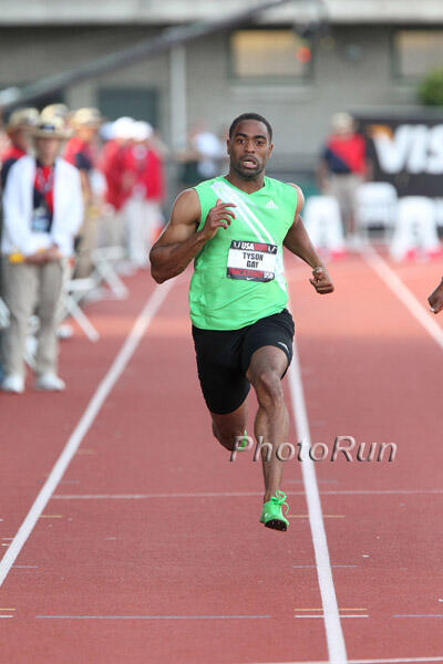 Tyson Gay looked relaxed as he won the men’s 100m in 9.79 in a very fast field that produced four men under the 10-second mark. Asafa Powell of Jamaica was second in 9.88, and Mike Rodgers was third in 9.96. Gay continued his undefeated streak of winning every final he has entered this year. This was Gay’s second Diamond League win in the 100m this year, and Gay is now tied with Justin Gatlin in the overall standings for the event.