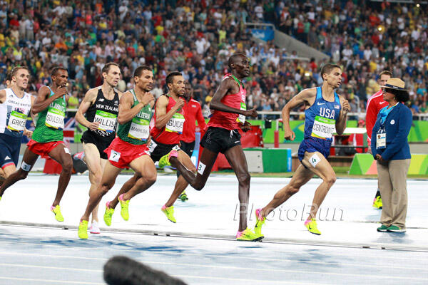 108 years after the last U.S. gold medal in the men’s 1500m, Matthew Centrowitz (Arnold, Maryland) led almost start to finish to pull off the win in 3:50.00. Centrowitz went to the front of the field midway through the first lap when the pace slowed to a crawl. He took the bunched-up pack through 400m in 66.83 and 800m in 2:16.59. At the bell, many of the top contenders started making moves to position themselves for a furious finish, with Centrowitz reasserting himself down the backstretch. No one could overcome Centrowitz’s closing pace, as he covered the final 300m in 38 seconds and the final lap in 50 seconds to hold off 2012 gold medalist Taoufik Makhloufi of Algeria (3:50.11) and Nick Willis of New Zealand (3:50.24).