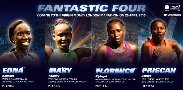 The women’s elite field announced today contains seven runners who have completed the 26.2-mile distance in less than two hours 22 minutes, and no fewer than 10 who have run quicker than 2:25. But it’s the Fantastic Four who are expected to battle it out over the closing stages just as they did in 2012 when Keitany smashed the Kenyan record.