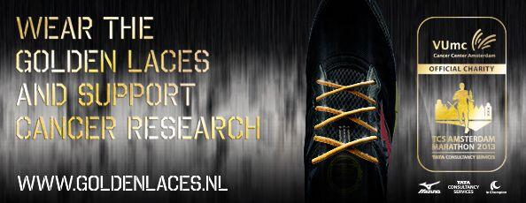 • Wear your Golden Shoelaces during the TCS Amsterdam Marathon and support cancer research