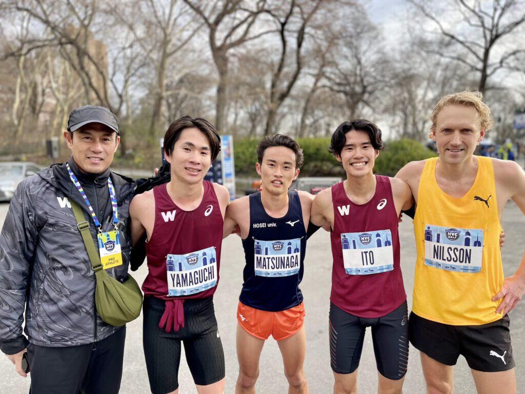 A 2nd-year at Waseda University, Yamaguchi was one of three collegiate runners running New York in the 11th year of JRN’s development program collaboration between the Ageo City Half Marathon and the New York Road Runners, a program that has seen people like future half marathon and marathon NR breaker Yuta Shitara and Paris Olympic team member Akira Akasaki make their international debuts.