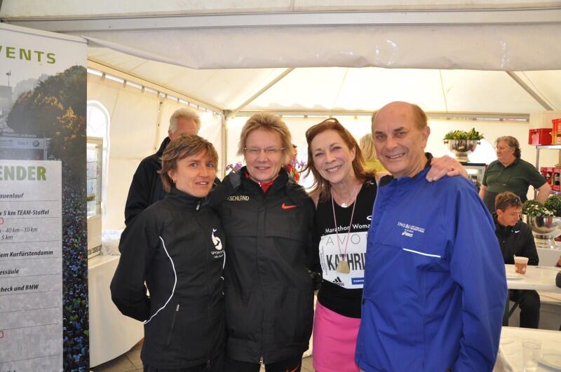 Irina Mikitenko, Kathrin Dörre-Heinig, Kathrine Switzer und ihr Mann Roger Robinson, ein ehemaliger Spitzen-Marathonläufer der Altersklasse. ©camera 4