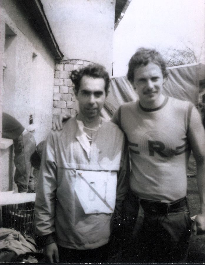 Klaus Hobrack (lks.) mit dem „Rennsteiglauf-Urgestein“ Peter Baumann, der ein T-Shirt mit dem hobrackschen Rennsteiglauflogo trägt. - Foto: Fotosammlung Hans-Georg Kremer