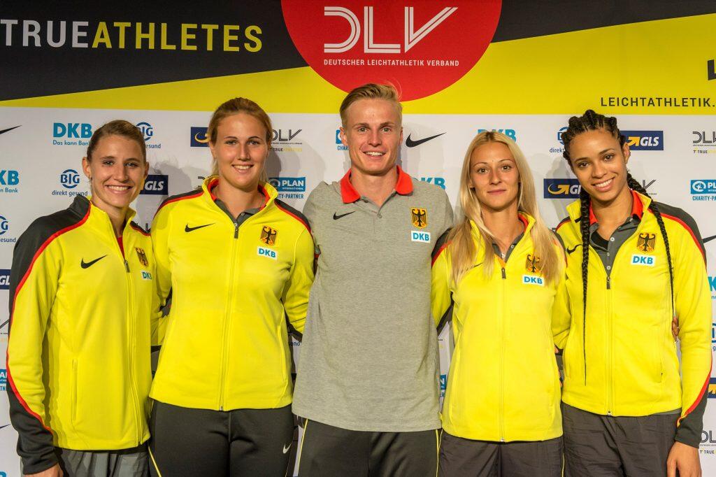 Die erfolgreichen deutschen EM-Teilnehmer vom Freitag (v.li.): Carolin Schäfer, Christin Hussong, Gregor Traber, Kristin Gierisch und Marie-Laurence Jungfleisch - DLV/Jan Papenfuß