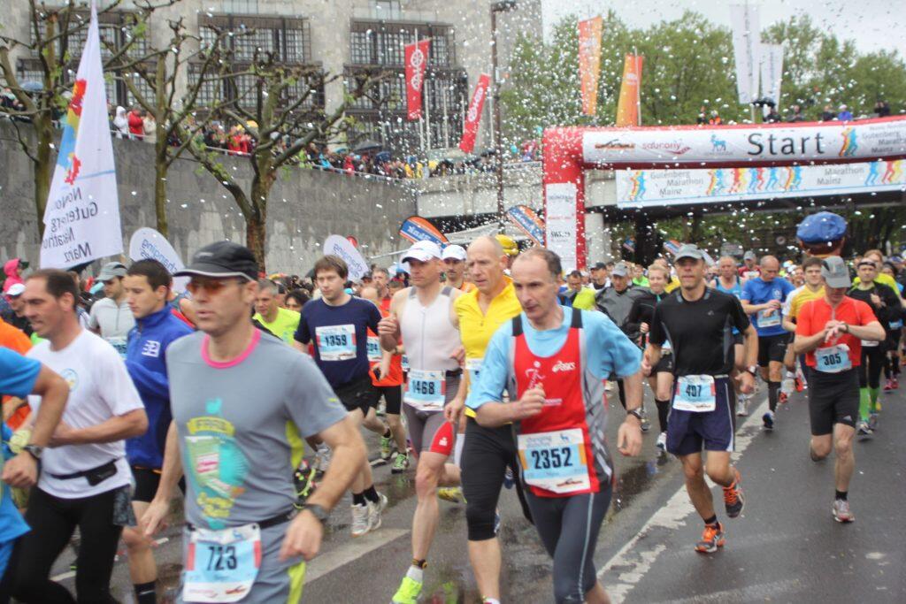In der Regel ist der Gutenberg-Marathon binnen Tagen mit 9 500 Anmeldungen ausgebucht, heuer brauchte es sogar vier Monate, bis das Online-Portal geschlossen werden konnte. Ob Marathondistanz oder nur die halbe Strecke, in Mainz hat Spontanität Triumph, denn die Entscheidung für oder gegen Marathon kann ein Läufer kurz vor dem Ziel erst treffen. Der „Kampf gegen den inneren Schweinehund" dürften alljährlich viele in letzter Sekunde noch verloren haben, wenn das Ziel mit so mancher Leckerei (oder einem alkoholfreien Bier) und nicht noch einmal 21,097 Kilometer lockt. Scheinbar ließen sich diesmal besonders viele von den Regenwolken massiv abschrecken, denn lediglich 1189 Marathonläufer und 7 670 Halbmarathonläufer passierten die Messmatten im Ziel.