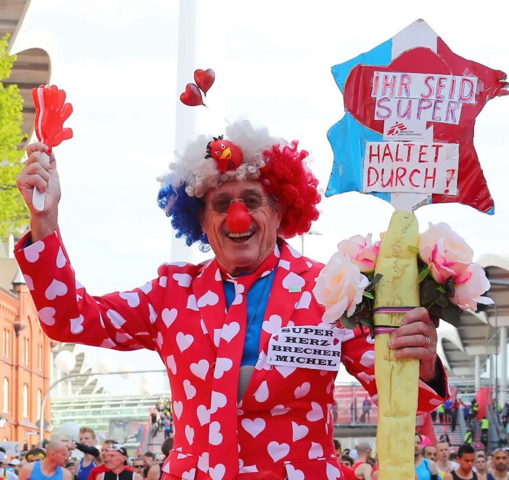 Viele kennen ihn als Monsieur Baguette, als Michel on tour oder als Spaßpräsident. Seine Uniform, seine Haare im Trikolore-Format und sein französischer Akzent sowie seine besonders liebevolle Art, die Läuferinnen und Läufer auf ihrem langen Weg vom Start bis zum Ziel anzufeuern und zu motivieren, machen diesen Franzosen so charmant und so berühmt.