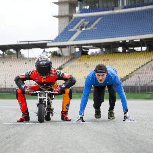 Ein rasantes Duell: Stefan Bradl und Alex Hofmann treten beim Wings for Life World Run 2015 gegeneinander an