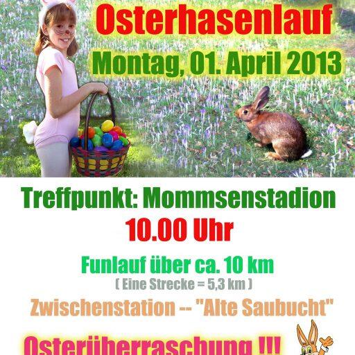 In Paderborn gibt es den schon 67-jährigen Paderborner Osterlauf im Halbmarathon und 10 km mit über 9.000 Teilnehmern, in Berlin gibt es eine nicht so lange Tradition mit Bernd Hübners 13. Berliner Osterhasenlauf, am Montag, dem 1. April 2013 um 10.00 Uhr am Mommsenstadion in Berlin C...