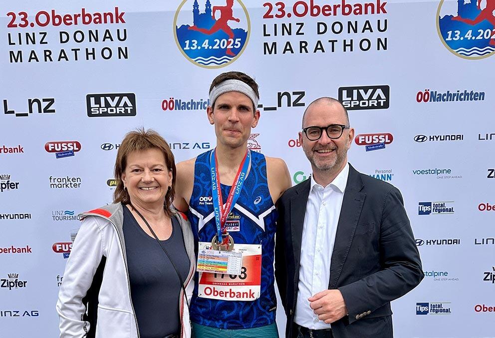 Nach der Bronzemedaille 2023 in Wien und der Silbermedaille 2024 in Linz freute sich Markus Lemp über die dritte Medaille bei Staatsmeisterschaften im Marathon in Folge und über eine deutliche persönliche Bestleistung von 2:25:00 Stunden. Damit lief der Oberösterreicher vor heimischem Publikum unmittelbar hinter Bauernfeind auf Platz neun der Gesamtwertung des Linz Marathon ein. „Ich bin überglücklich und konnte mein Tempo gut durchziehen, gegen Mario hatte ich keine Chance“, sagte der 35-Jährige, der drei Minuten unter seiner bisherigen Bestleistung blieb. Lemp hat in jungen Jahren in Linz Mechatronik studiert, für ihn war das somit ein echtes Heimrennen. „Die Stimmung war der Wahnsinn, so viele Leute haben meinen Namen gerufen!“