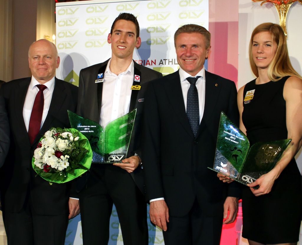 Hürdensprinterin Beate Schrott zum dritten Mal und Mittelstreckenläufer Andreas Vojta zum vierten Mal wurden als Österreichs Leichtathleten des Jahres geehrt. Fans, Trainer und Medien haben Ende des Jahres 2013 die beiden Aushängeschilder klar zu den Siegern gewählt. Als Österreichs herausragende Nachwuchs-Athleten feierte man Djeneba Touré und Nikolaus Franzmair. Die 17-jährige Steirerin Touré erzielte im Diskuswurf und Kugelstoß ÖLV U18-Rekorde und war in beiden Disziplinen bei den U18-Weltmeisterschaften vertreten. Franzmair überzeugte als Teilnehmer bei der Hallen-EM der Allgemeinen Klasse im 800m-Lauf, mit dem fünften Rang bei der U20-EM und als Vierter der U20-Europarangliste. Der 19-jährige Linzer erhielt die Auszeichnung zum zweiten Mal.