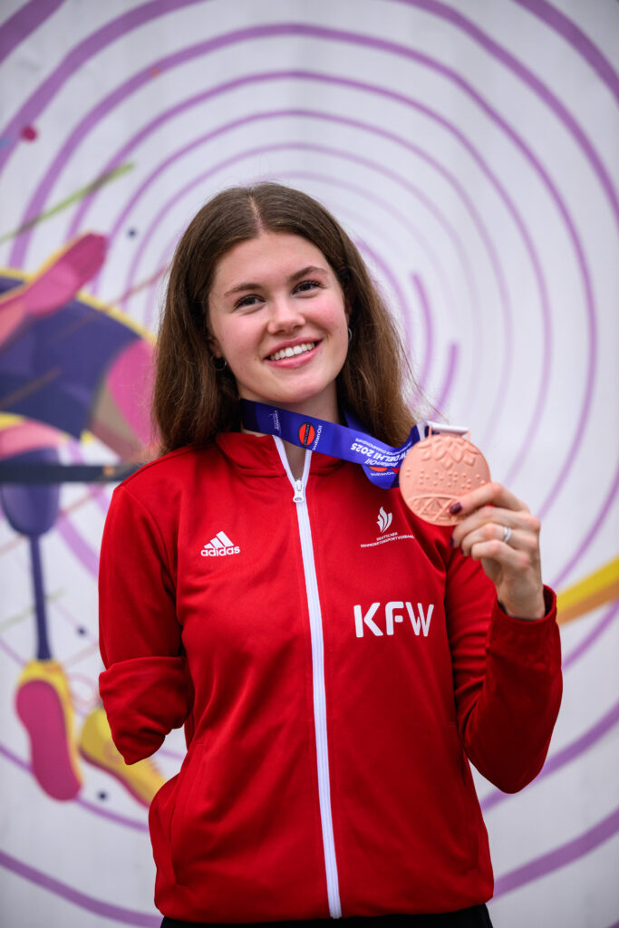 Jule Ross - NEW DELHI, INDIA - OCTOBER 2: Jule Ross of Germany poses with her medal for a photo at day six of the World Para Athletics Championships New Delhi 2025 at Jawaharlal Nehru Stadium on October 2, 2025 in New Delhi, India. - Photo by Tom Weller/DBS