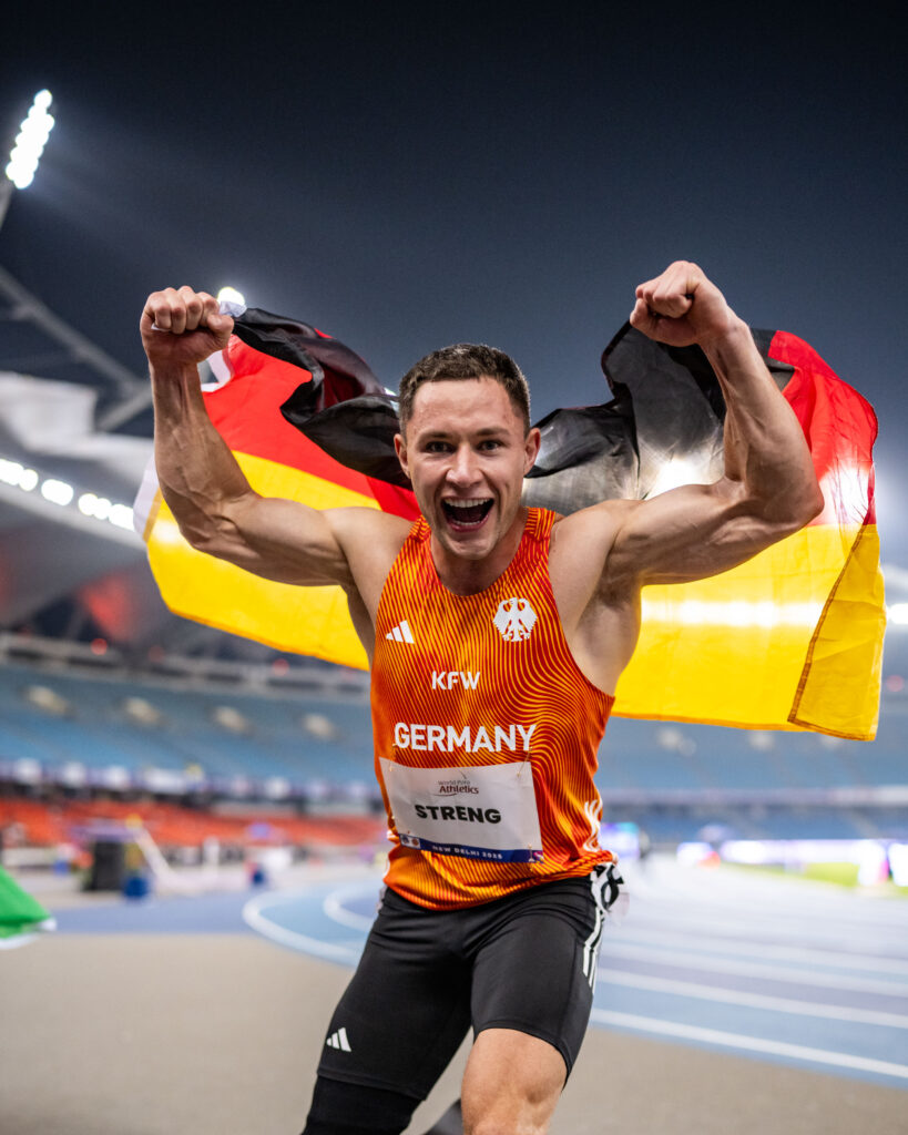Den goldenen Schlusspunkt setzte aus deutscher Sicht Felix Streng. Der 30-Jährige vom Sprintteam Wetzlar sprintete über 200 Meter zum Sieg und kürte sich zum Sprint-König von Neu-Delhi. Streng, der bereits über 100 Meter den Titel gewonnen hatte, setzte sich im packenden Zweikampf in der Klasse T64 gegen Paralympics-Sieger Sherman Guity Guity durch und hatte am Ende in 21,60 Sekunden die Nase vorne – eine Zehntel vor dem Costa Ricaner. Es war die dritte Medaille für Deutschland am Abschlusstag innerhalb von etwas mehr als einer halben Stunde. „Doppel-Weltmeister – das klingt extrem gut und ist wirklich ein Traum. Jeder Sprinter wünscht sich, die 100 und 200 Meter zu gewinnen. Nach der langen Saison habe ich eigentlich nicht so richtig damit gerechnet, dass das hier klappen könnte“, berichtet Streng. „Heute war ich selbstbewusst beim Aufwärmen, auch wenn die klimatischen Bedingungen echt eine Herausforderung sind, weil es extrem warm ist und man ständig schwitzt. Vorlauf und Finale an einem Tag haben daher einiges von mir abverlangt. Doch ich liebe diesen Moment, ich bin für die Momente gemacht und will dann einfach das Beste aus mir herausholen.“