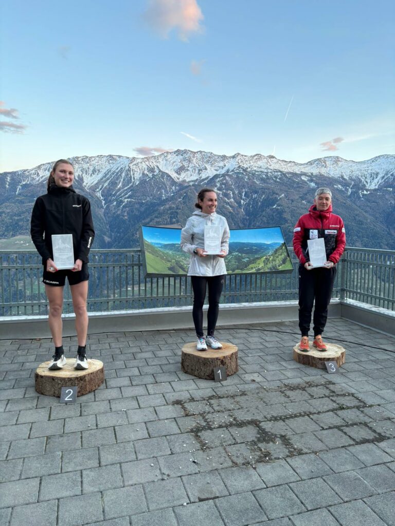 Bei den Damen setzte sich Martina Falchetti (La Sportiva) durch. Sie gewann der Untersteller-Vertical mit einer Zeit von 35.22 Minuten. Rang zwei ging an Lokalmatadorin Anna Hofer (Sportclub Meran/Scarpa), die rund eine halbe Minute langsamer als Falchetti war (+36 Sekunden). Das Podium komplettierte mit Annelise Felderer eine Routinierin aus dem Sarntal, die für die 4,2 Kilometer mit 760 Höhenmetern 36.50 Minuten benötigte.