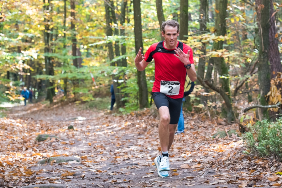 Vom Start weg nämlich hatte Jonas Lehmann auf der 8,7 km langen Strecke mit kumulierten 510 Höhenmetern die Kontrolle über die zunächst noch mehrköpfige Spitzengruppe übernommen, baute schon nach dem ersten Kilometer einen Vorsprung vor Lennart Nies aus, der gewiss mit dem Vorsatz ins Rennen gegangen war, mit einer starken Leistung wertvolle Punkte im Kampf um den Sieg beim Pfälzer Berglaufpokal zu holen. Doch eine Woche nach seinem Sieg beim Schwarzwald-Marathon in Bräunlingen in bemerkenswerten 2:36:52 Stunden fehlten jedoch die nötigen Körner, um einem blendend aufgelegten Jonas Lehmann Paroli bieten zu können.