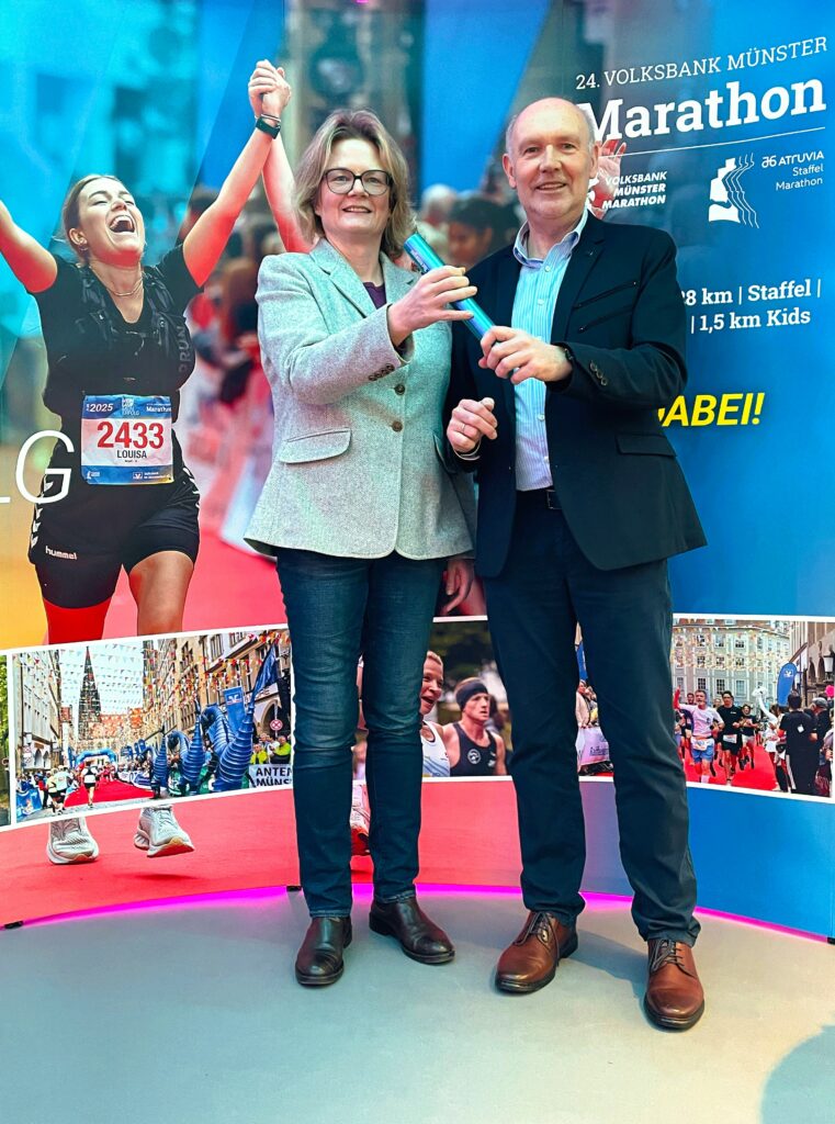 (v.l.) Daniela Bücker-Vorständin Atruvia AG_und Michael Brinkmann geben Startschuss für das Anmeldeportal_Atruvia Staffelmarathon - Foto: Veranstalter
