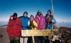 Den höchsten Gipfel, Uhuru Peak, auf 5895 m erreicht. Zweiter von links: Klaus Weidt –