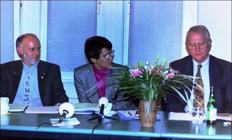 Rita Süssmuth bei der Rennsteiglaufpressekonferenz 1994, rechts der Chef des MDR-Thüringen, Kurt Morneweg, links der Präsident des GutsMuths-Rennsteiglaufvereins, Hans-Georg Kremer - Foto: privat