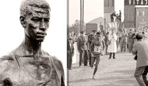 Abebe Bikila – zweifacher Marathon Olympiasieger – Skulptur von Arpad Racko, lief 1961 beim Kosice Marathon – Košice Marathon Club – Archiv