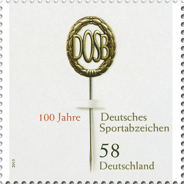 Das Bundesfinanzministerium ehrt mit der Briefmarke im Wert von 58 Cent den Fitnessorden des Deutschen Olympischen Sportbundes (DOSB), der sich in den vergangenen 100 Jahren zur erfolgreichsten Auszeichnung im Breitensport entwickelt hat.