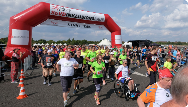 Der SoVD-Inklusionslauf 2019 ist eine Bewegungs- und Sportveranstaltung für Menschen mit und ohne Behinderung auf dem ehemaligen Flughafengelände Tempelhof, dem Tempelhofer Feld.