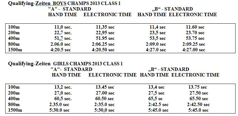 Für die Teilnahme wird an den Schulen des Landes hart trainiert, schließlich sind ansprechende Qualifikationsnormen Voraussetzung zur Teilnahme. In den Sprints und den Mittelstrecken wurden 2013 beispielsweise diese Leistungen gefordert:
