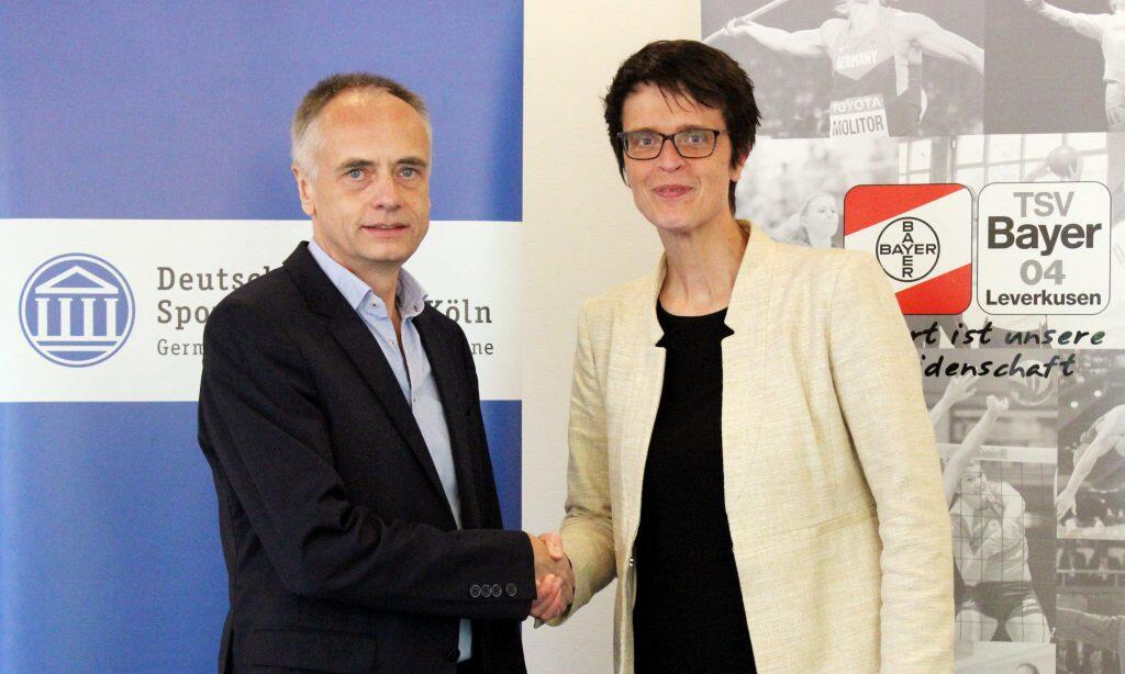 (v.l.n.r.): Univ.-Prof. Dr. Heiko Strüder, Rektor der Deutschen Sporthochschule Köln, und Anne Wingchen, Geschäftsführerin TSV Bayer 04 Leverkusen e.V.