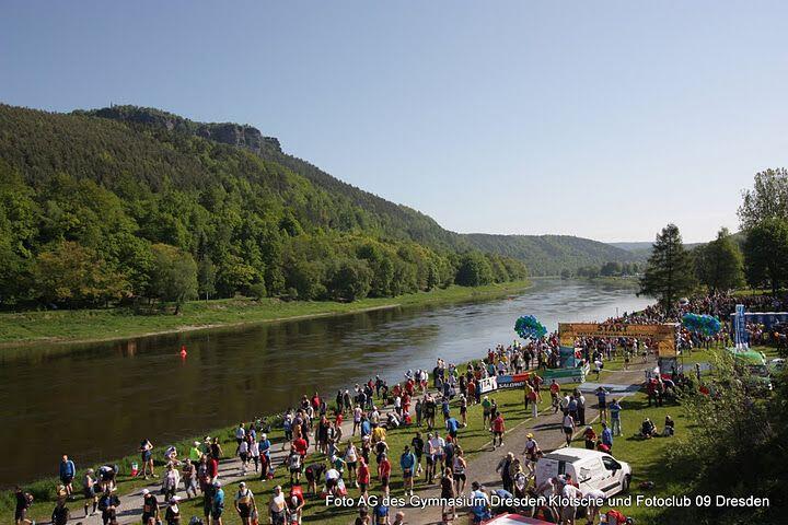 Logistisch für die Organisatoren nicht einfach, aber per Schienentransfer durchaus machbar sind die auseinander liegenden Startorte: Der Marathonstart erfolgt in Königstein, der Halbmarathon in Pirna, der 10 km-Lauf im Schillergarten am „Blauen Wunder“, Dresdens weltbekannter Hängebrücke, und schließlich der Minimarathon am Fährgarten.