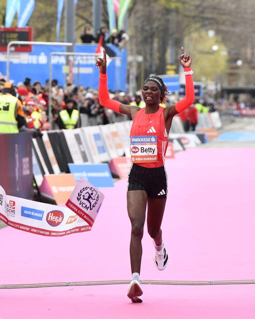 Auch im Frauenrennen wurde eine Überraschungssiegerin gefeiert: Die 25-jährige Kenianerin Betty Chepkemoi setzte sich rund acht Kilometer vor dem Ziel von ihren Mitläuferinnen ab und lief einem souveränen Sieg entgegen. In 2:24:14 Stunden überquerte sie als Erste die Ziellinie vor dem Burgtheater und feierte damit ihren bislang größten Erfolg auf internationaler Bühne.