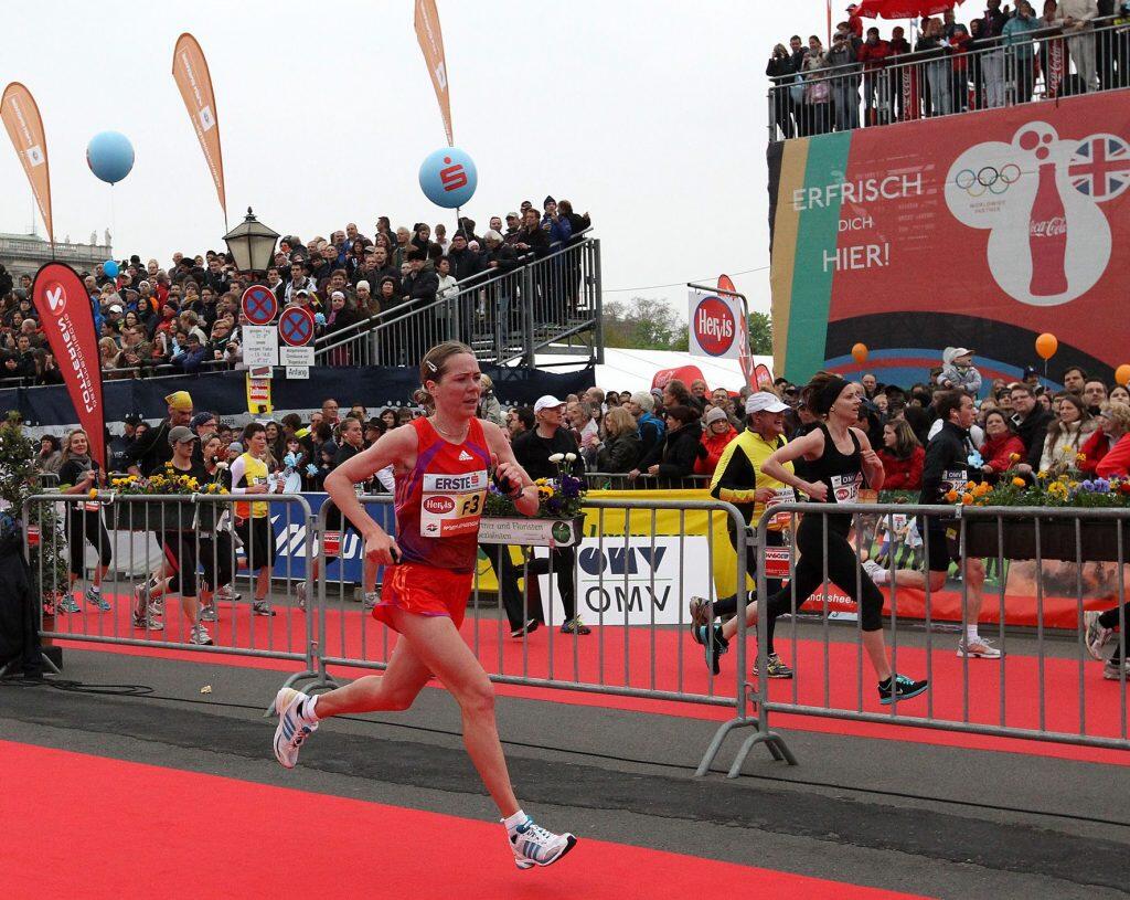 Olga Glok kurz vor dem Ziel beim Vienna City Marathon 2012. ©VCM / Niki Wagner