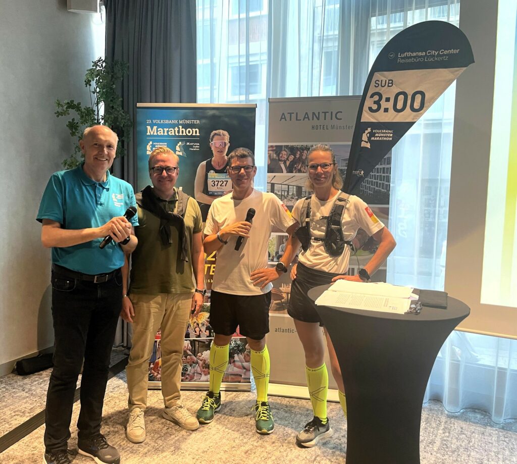 Pressekonferenz beim Volksbank Münster Marathon 2025 mit v.lks.: Michael Brinkmann_Matthias Lückertz Jr._Thomas Schulte und Michaela Winter.j - Foto: Veranstalter
