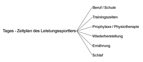 Deshalb sollten Trainer gemeinsam mit ihren vor allem talentierten Athleten immer vor Beginn des neuen Trainings- und Wettkampfjahres beraten und festlegen, durch welche neuen veränderten Organisationsformen die schulischen bzw. beruflichen Anforderungen mit der Trainingsbelastung, als auch den Maßnahmen zur Sicherung aller notwendigen sportmedizinischen Maßnahmen und der Physiotherapie auf ein neues Niveau angehoben werden können. In einem gemeinsam zu erarbeitenden Tageszeitplan für die nächsten überschaubaren Wochen sollten sowohl Trainer als auch die Sportler einen Trainingszeitplan erarbeiten und Zeiten für ein möglichst oftmaliges gemeinsames Training festlegen.
