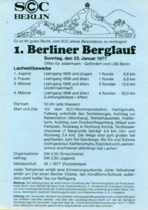 Die Ausschreibung zum 1. Berliner Berglauf am 23. Januar 1977 – Foto: Horst Milde